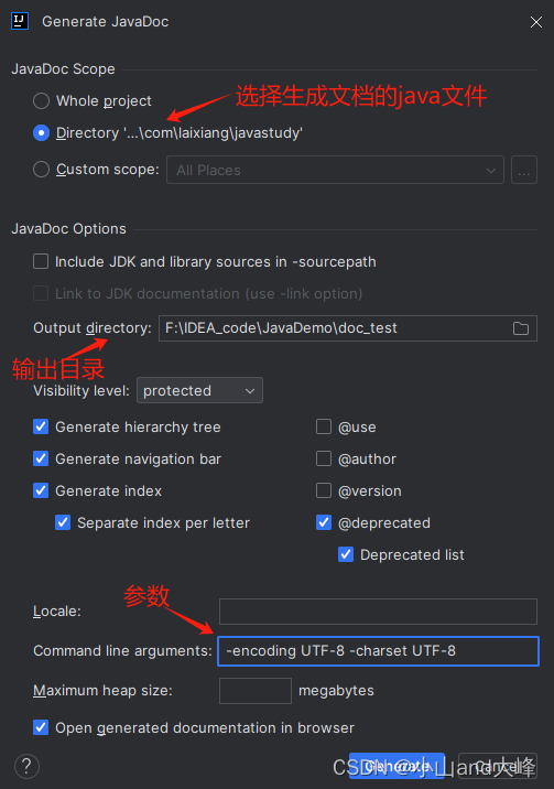 JavaDoc命令是用来生成自己的API文档,文档内部参数信息