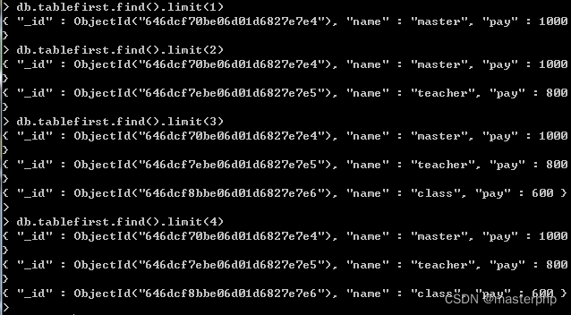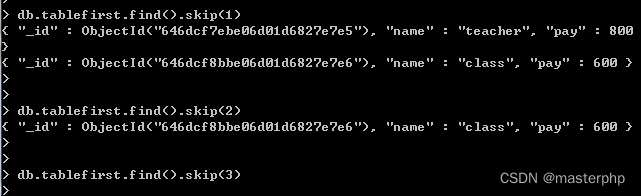db.collect.find().skip(数字);.skip(指定跳过数据个数)