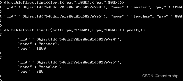 db.collect.find({$or: [{key1: value1}, {key2:value2}]}).pretty();(or条件)