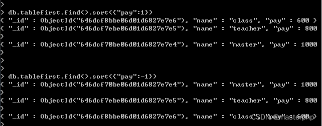 db.collect.find().sort({key:1});(sort(key:1表示升序 -1表示降序):key表示排序的字段)