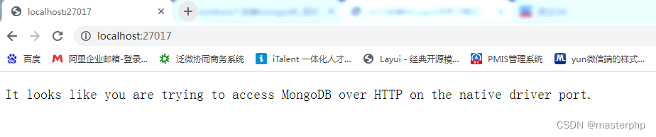5.访问地址:http://localhost:27017(如果不报错,本地环境就安装好了)