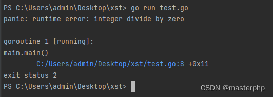 panic:这个是golang中的一个错误机制,简单点来说就是一个异常捕获的类,在程序运行的过程中,如果出现了错误,golang会调用panic来提示错误,一旦调用了panic,代码将会停止运行,简单点来说代码就会卡在错误的地方,并且提示具体的错误。