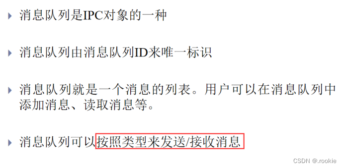 虽然管道使用简单,但是效率比较低,不适合进程间频繁地交换数据,并且管道只能传输无格式的字节流。为此消息队列应用而生。消息队列的本质就是存放在内存中的消息的链表,而消息本质上是用户自定义的数据结构。如果进程从消息队列中读取了某个消息,这个消息就会被从消息队列中删除。