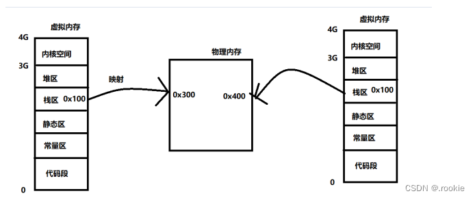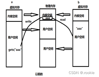 消息队列的速度比较慢,因为每次数据的写入和读取都需要经过用户态与内核态之间数据的拷贝过程,共享内存可以解决这个问题。所谓共享内存就是:两个不同进程的逻辑地址通过页表映射到物理空间的同一区域,它们所共同指向的这块区域就是共享内存。如果某个进程向共享内存写入数据,所做的改动将立即影响到可以访问同一段共享内存的任何其他进程。