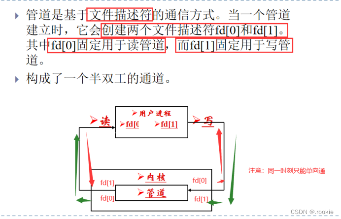 (3)只有在管道的读端存在时,向管道中写入数据才有意义。否则,向管道中写入数据的进程将收到内核传来的SIGPIPE信号(通常Broken pipe错误)-->管道破裂