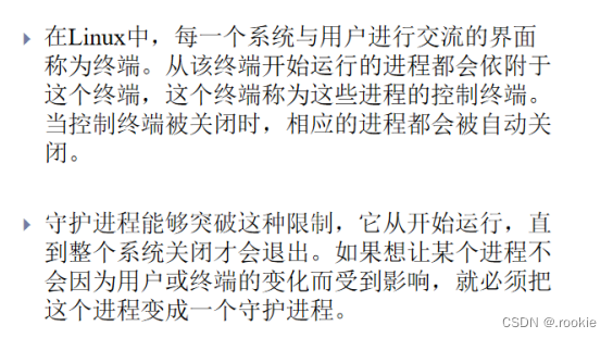 守护进程:该类进程在后台运行。它一般在Linux启动时开始执行,系统关闭时才结束。