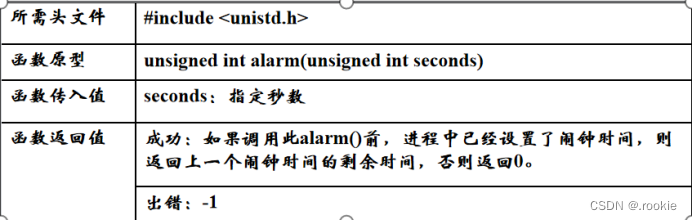 alarm()也称为闹钟函数,它可以在进程中设置一个定时器。当定时器指定的时间到时,内核就向进程发送SIGALARM信号