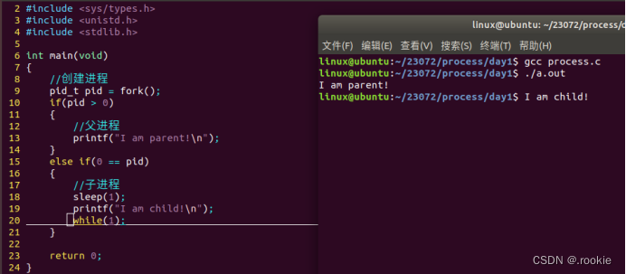 注意:fork之后,父进程和子进程存在资源竞争的关系,谁先调度由调度算法来决定