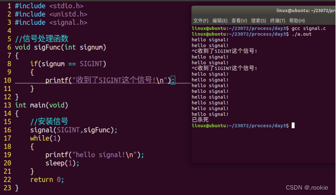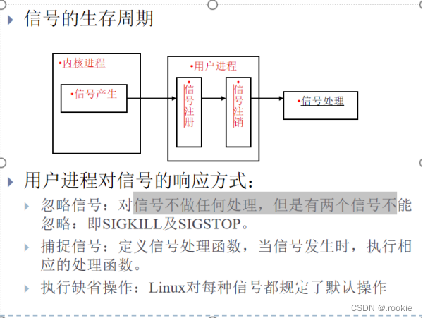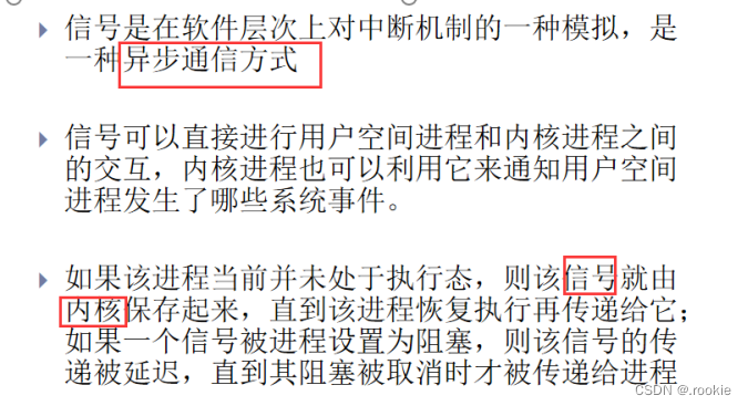 信号和信号量是完全不同的两个概念!信号是进程通信机制中唯一的异步通信机制,它可以在任何时候发送信号给某个进程。通过发送指定信号来通知进程某个异步事件的发送,以迫使进程执行信号处理程序。信号处理完毕后,被中断进程将恢复执行。用户、内核和进程都能生成和发送信号。