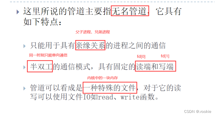 无名管道没有名字,不同的进程无法获取同一个文件描述符,具有亲缘关系的进程之间可以继承,从而得到同一个文件描述符。