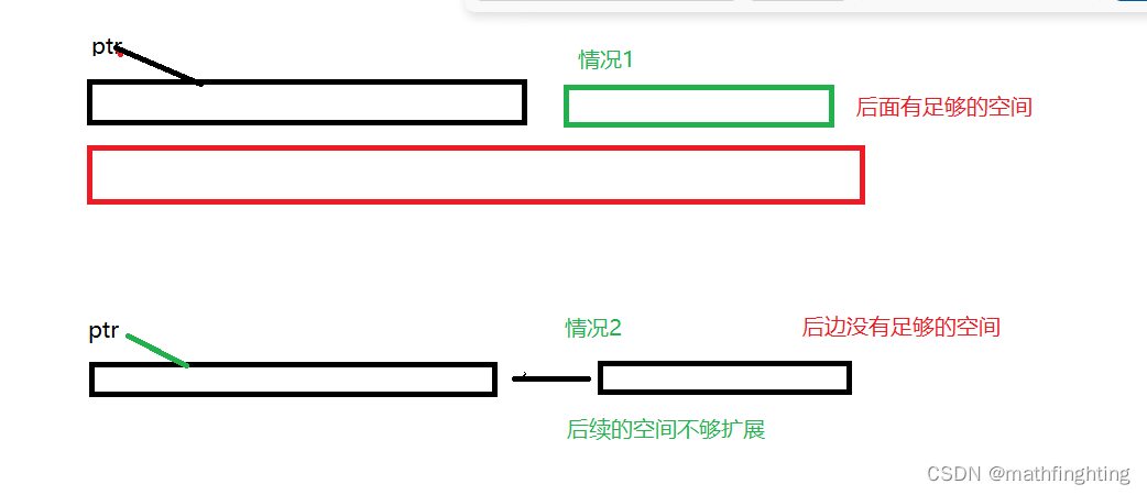 realloc在调整内存空间的是存在两种情况:(1)原有空间之后有足够大的空间