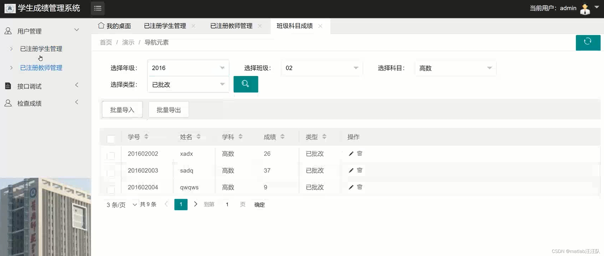 学生成绩管理系统,有三个用户,学生,管理员,教师。管理员可以对学生、教师信息增删改查。