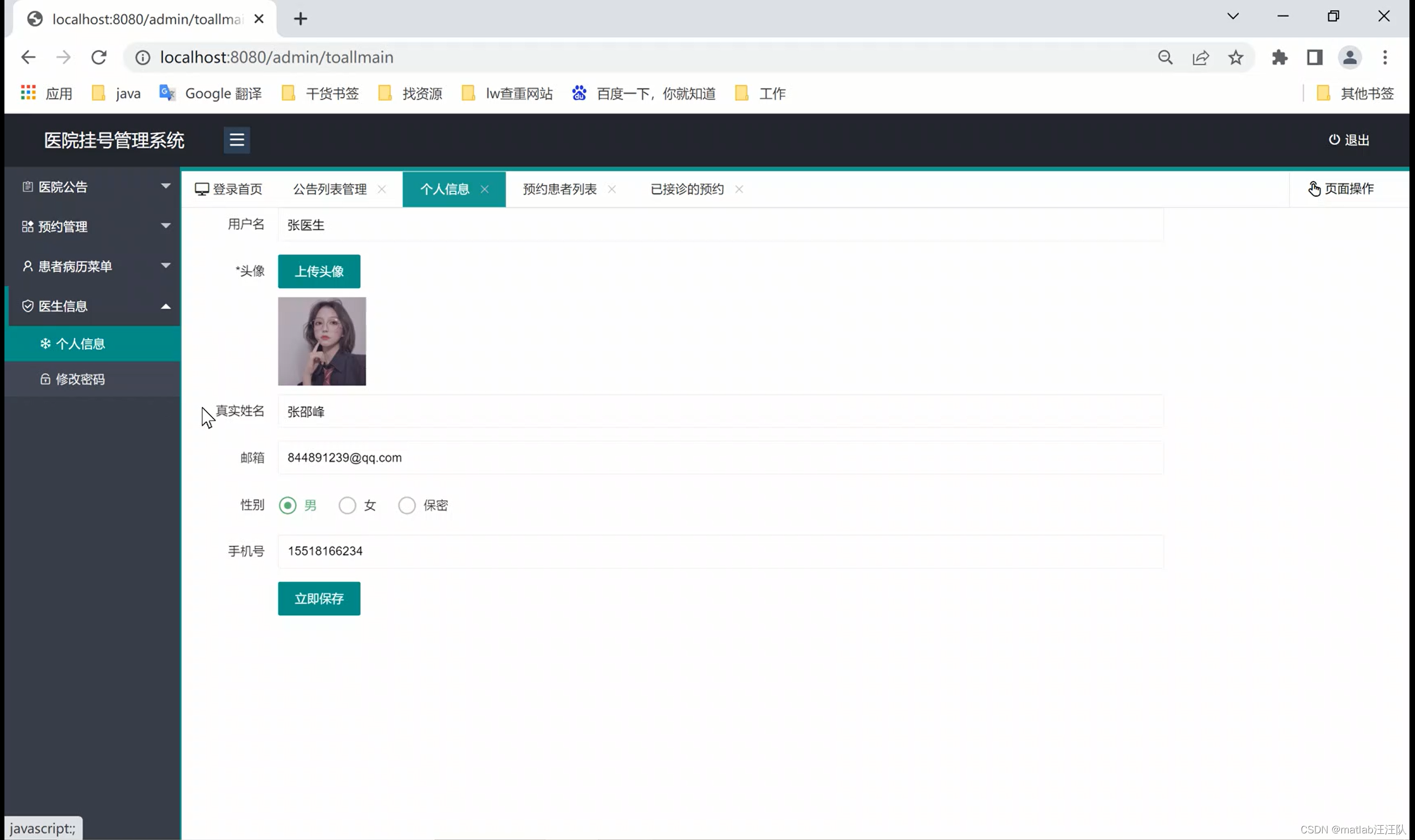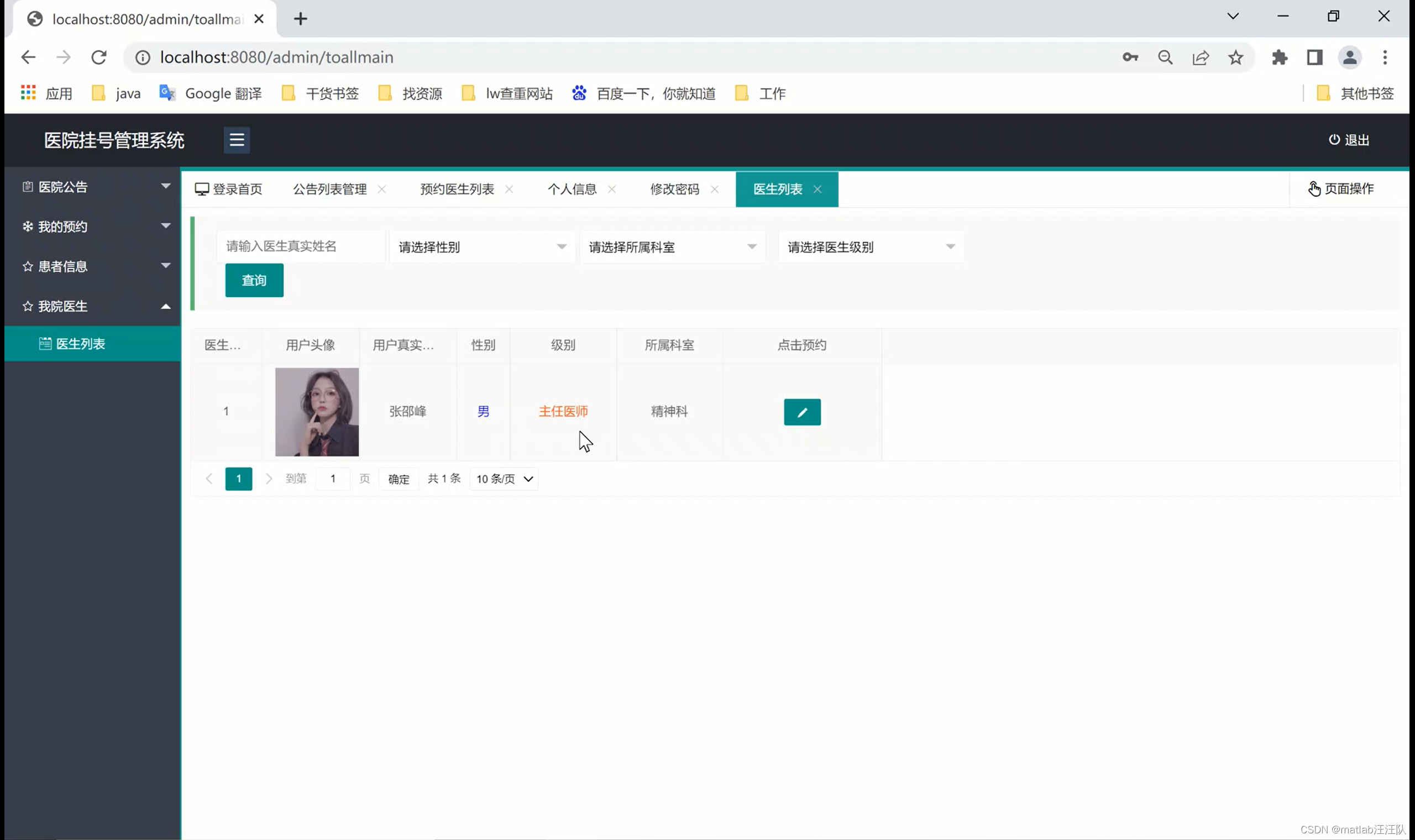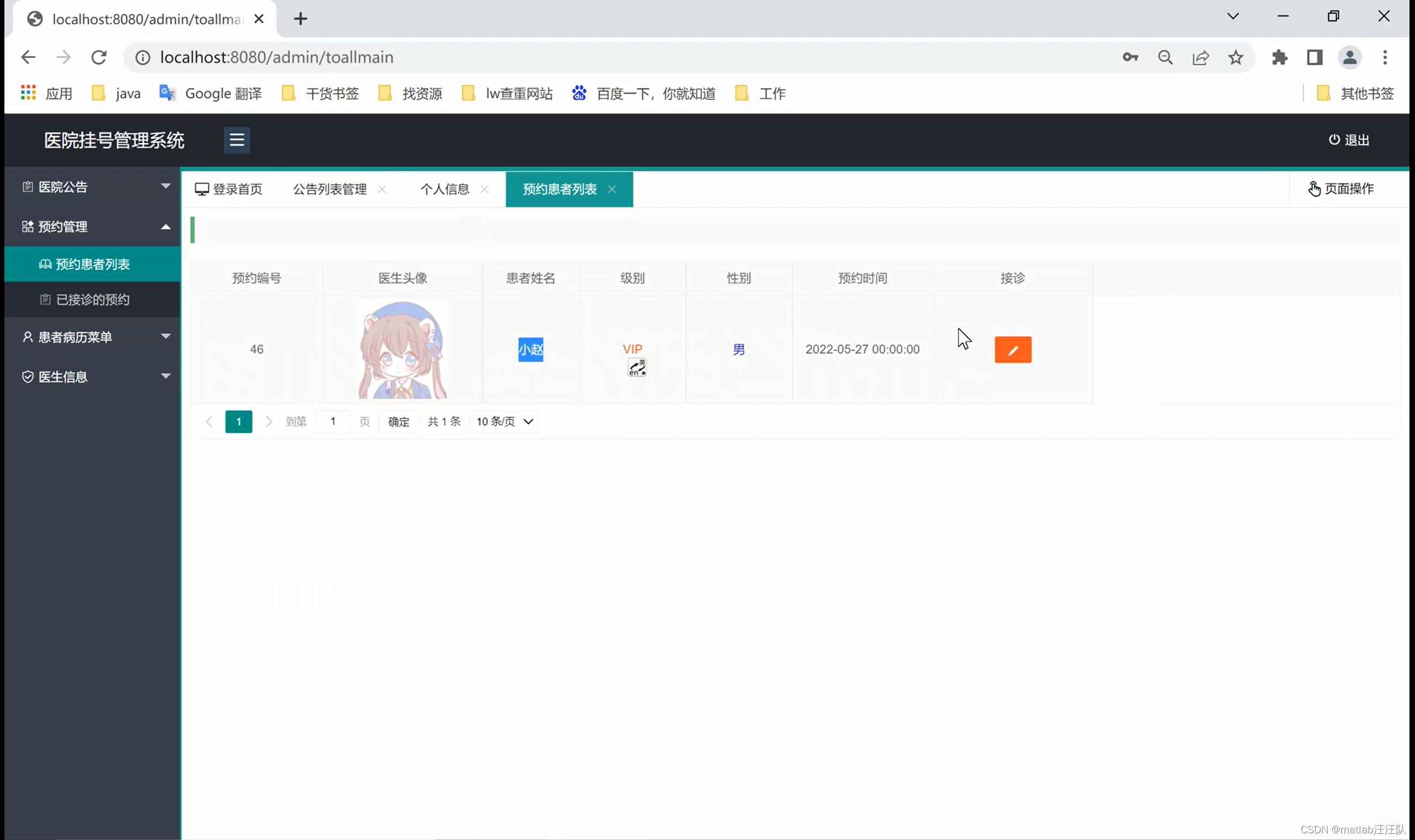 2)实现普通用户挂号预约功能。实现患者在网上选择合适的医生进行就诊;