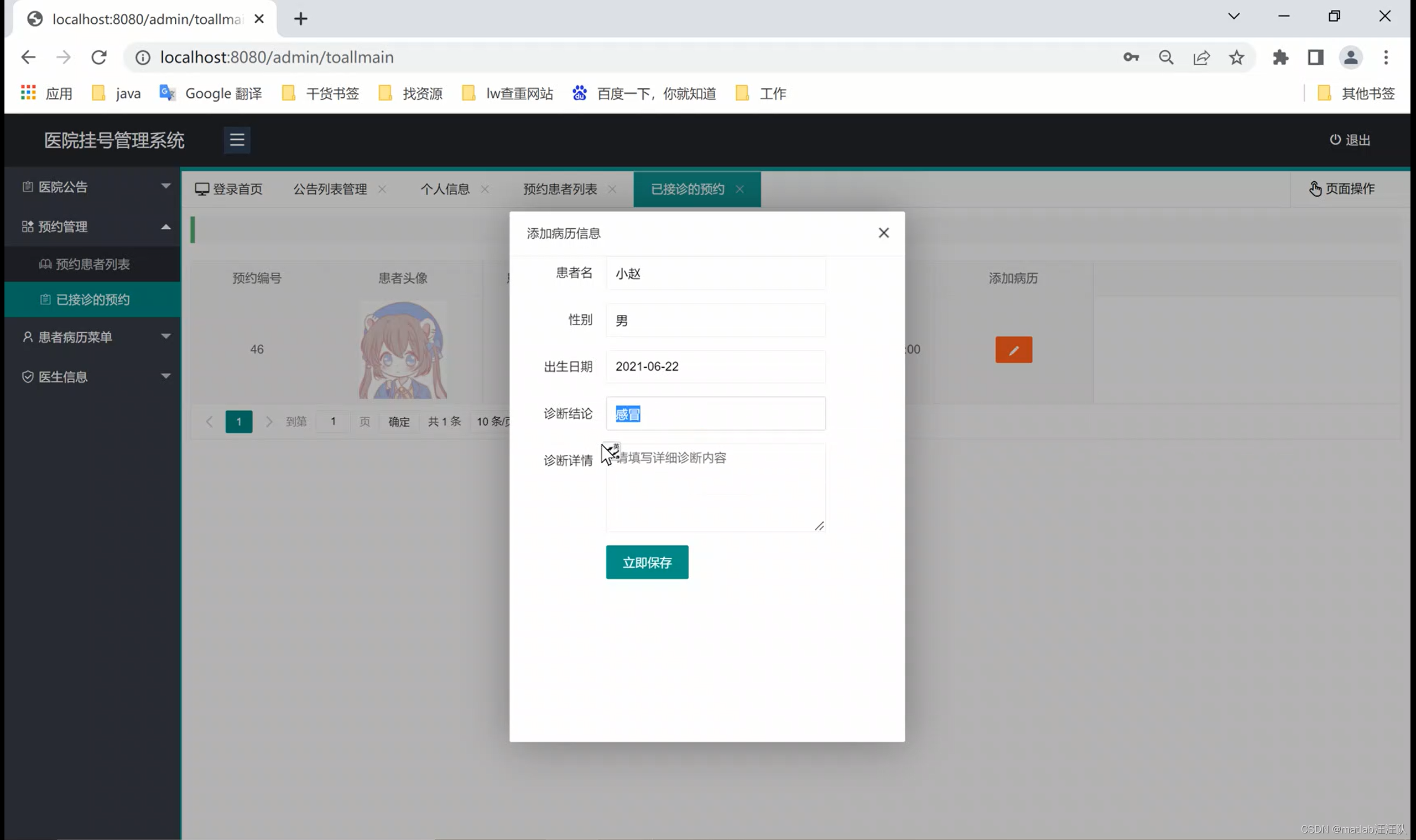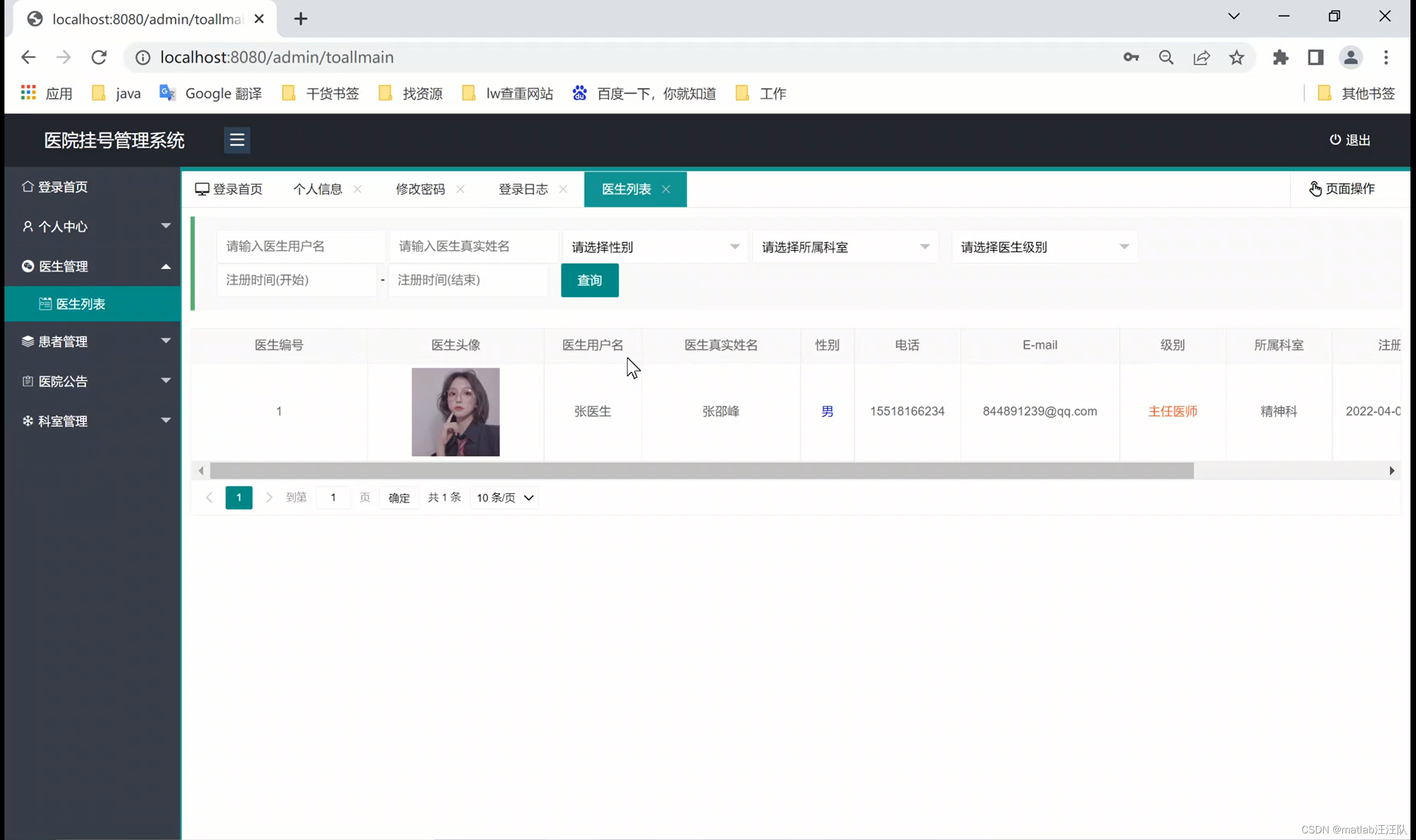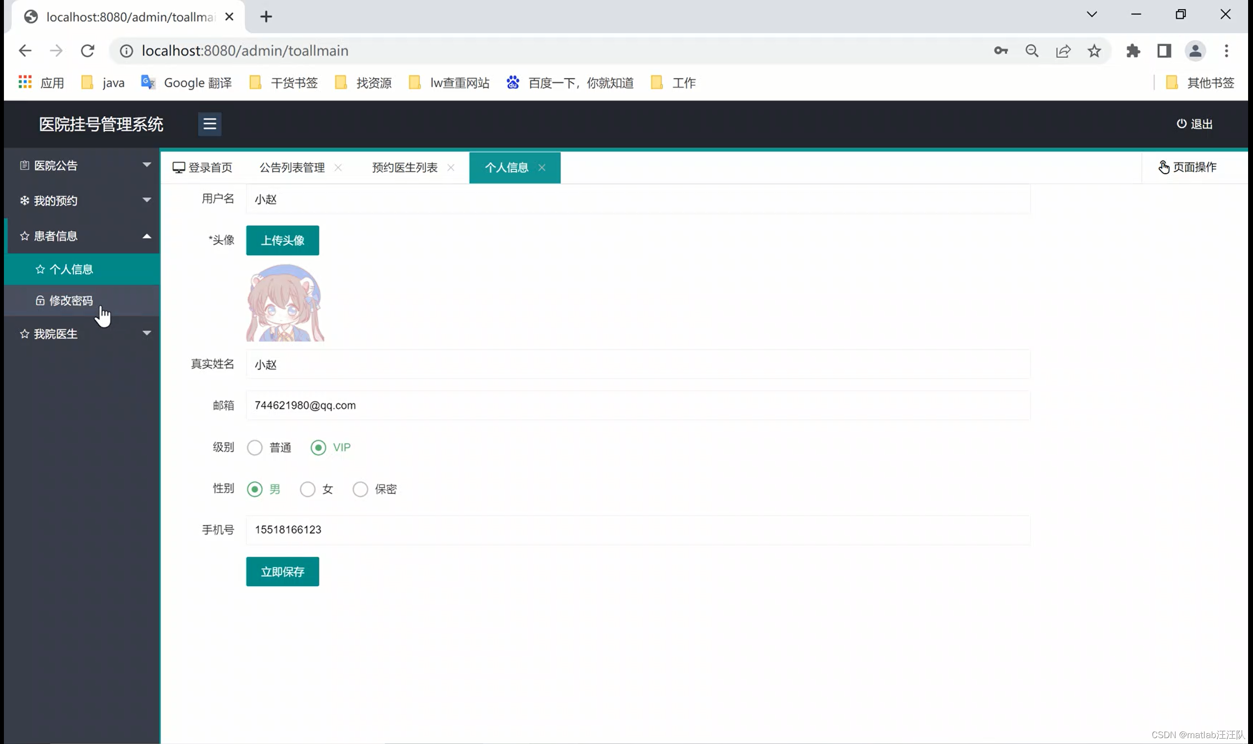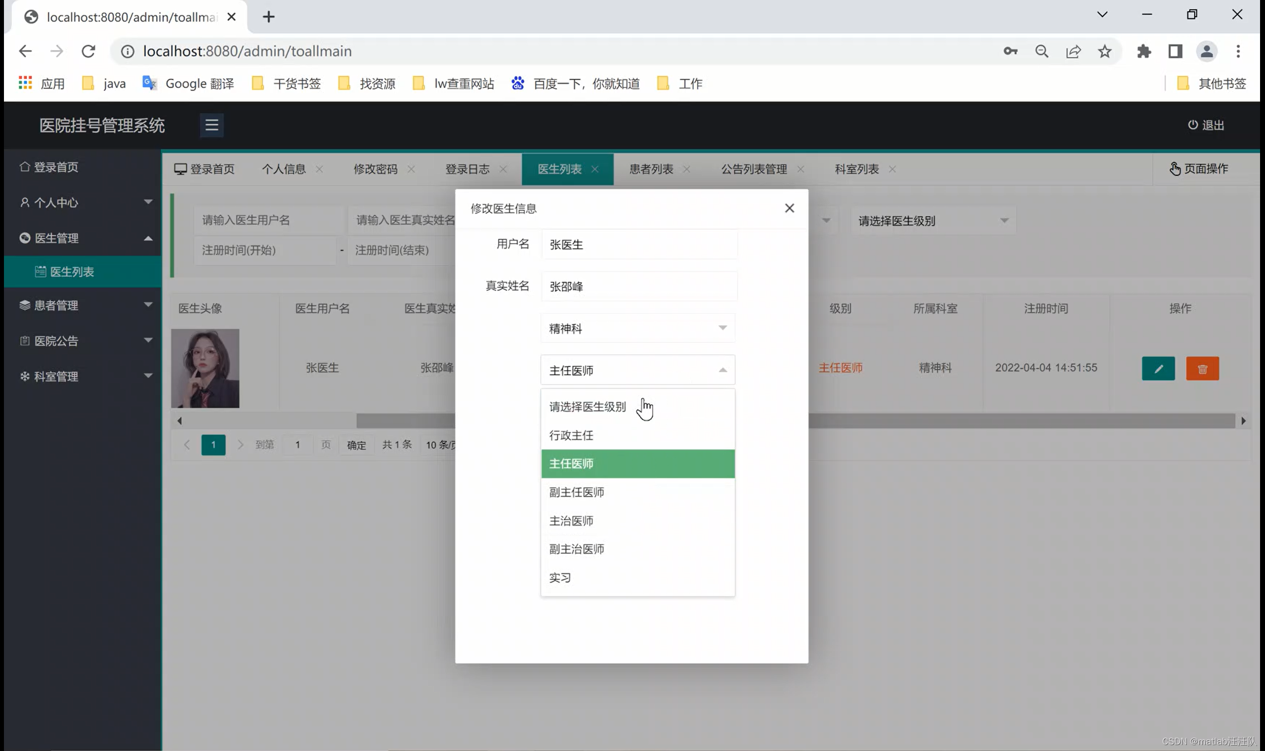 2)实现普通用户挂号预约功能。实现患者在网上选择合适的医生进行就诊;