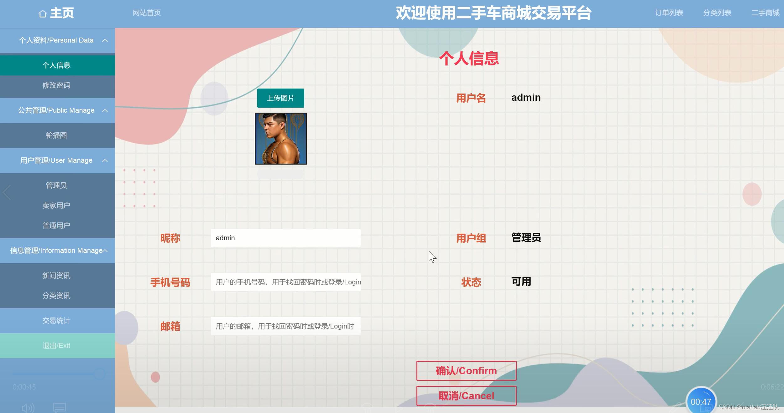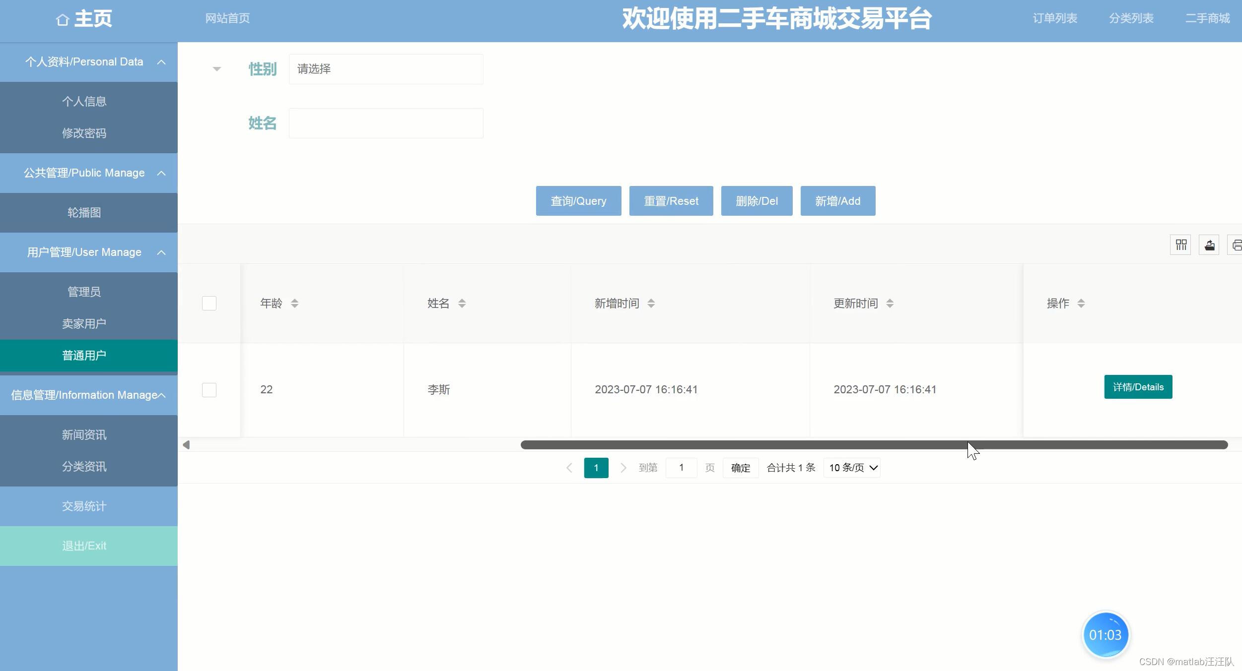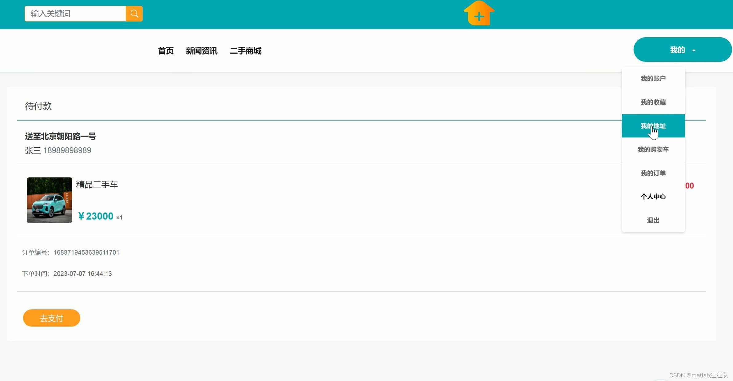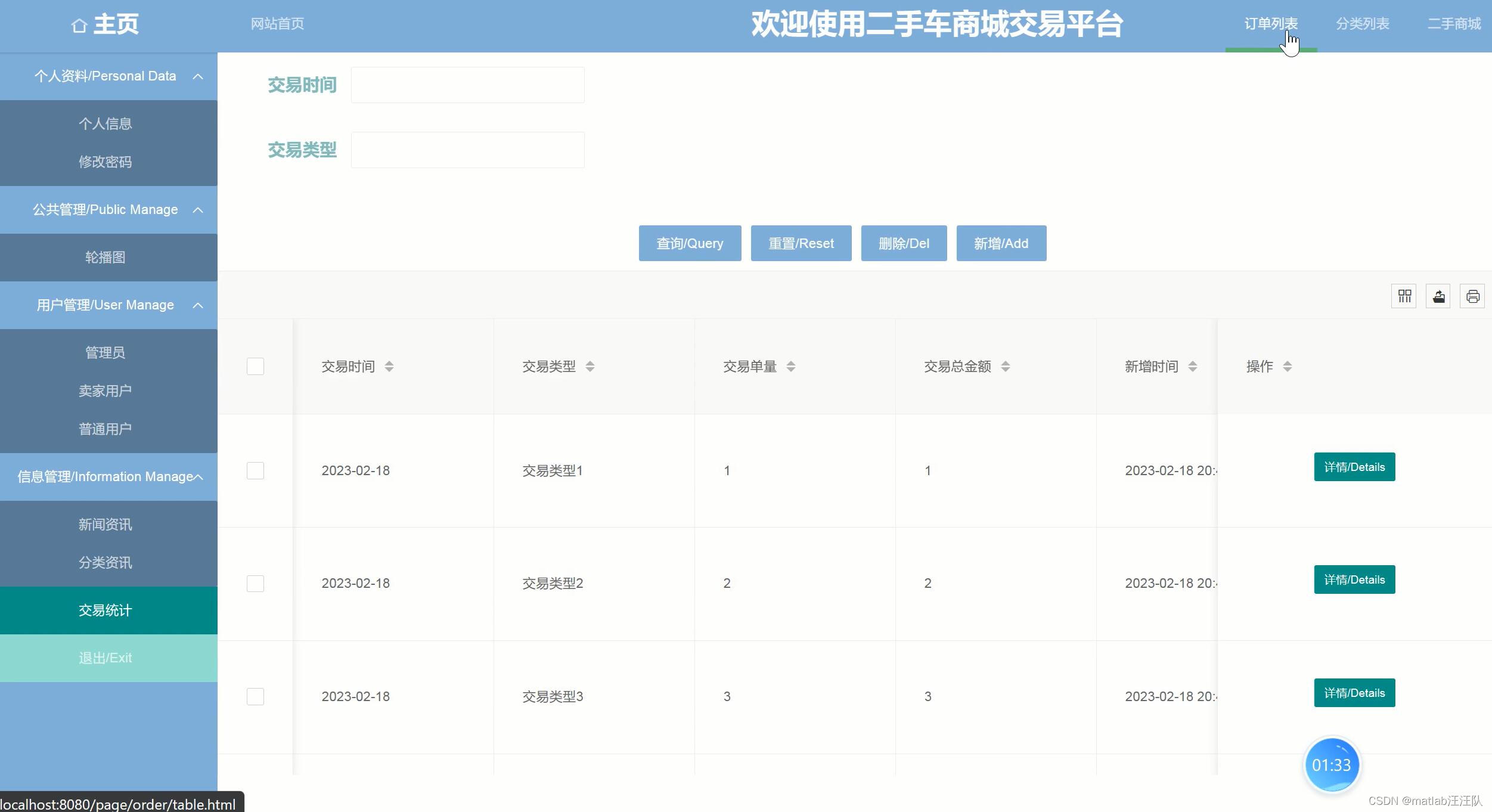 6.车辆的订单模块:后台可查看自己的订购信息以及自己的车辆售卖信息