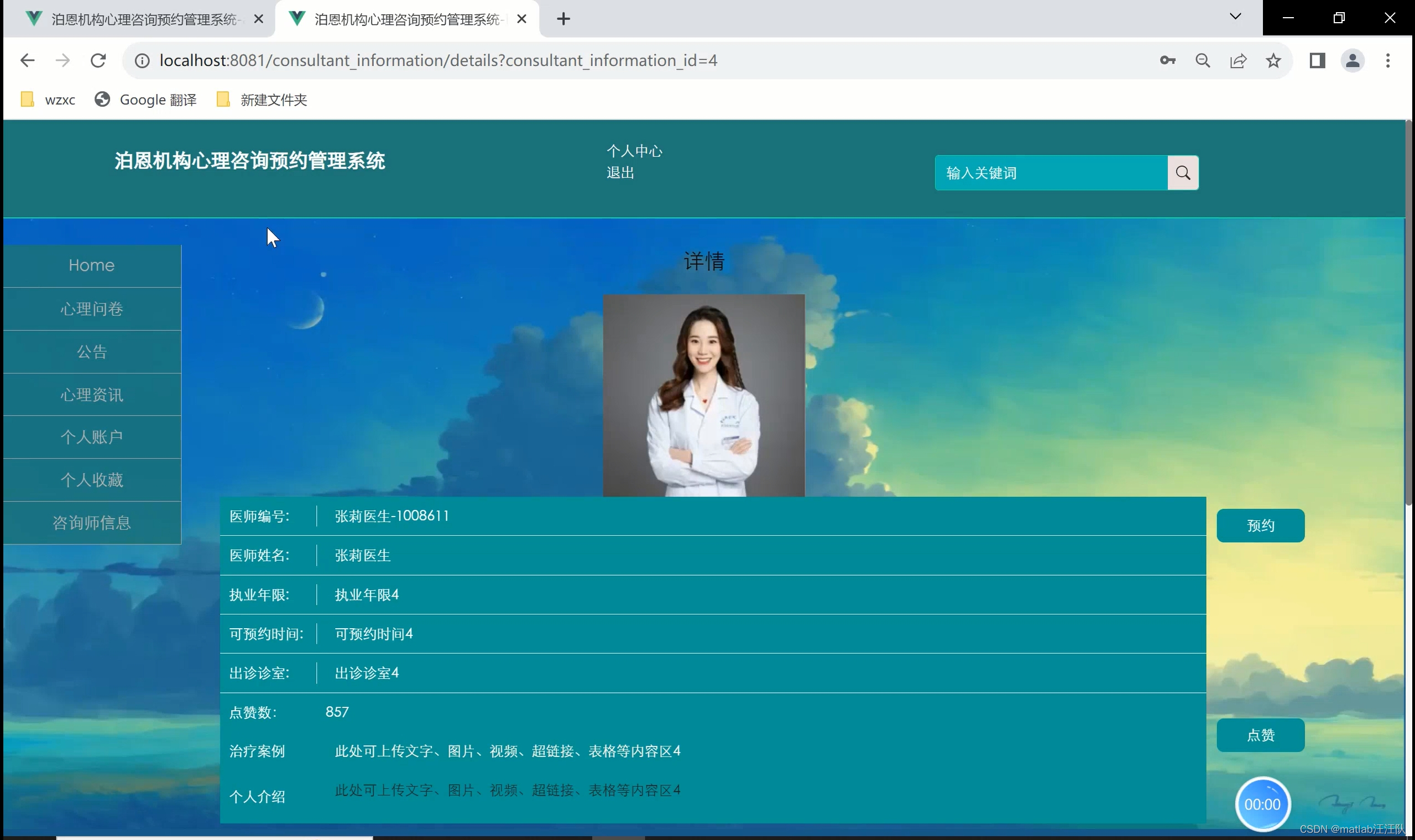 (5)预约时间模块:来访者可以查看咨询师的可预约时间。