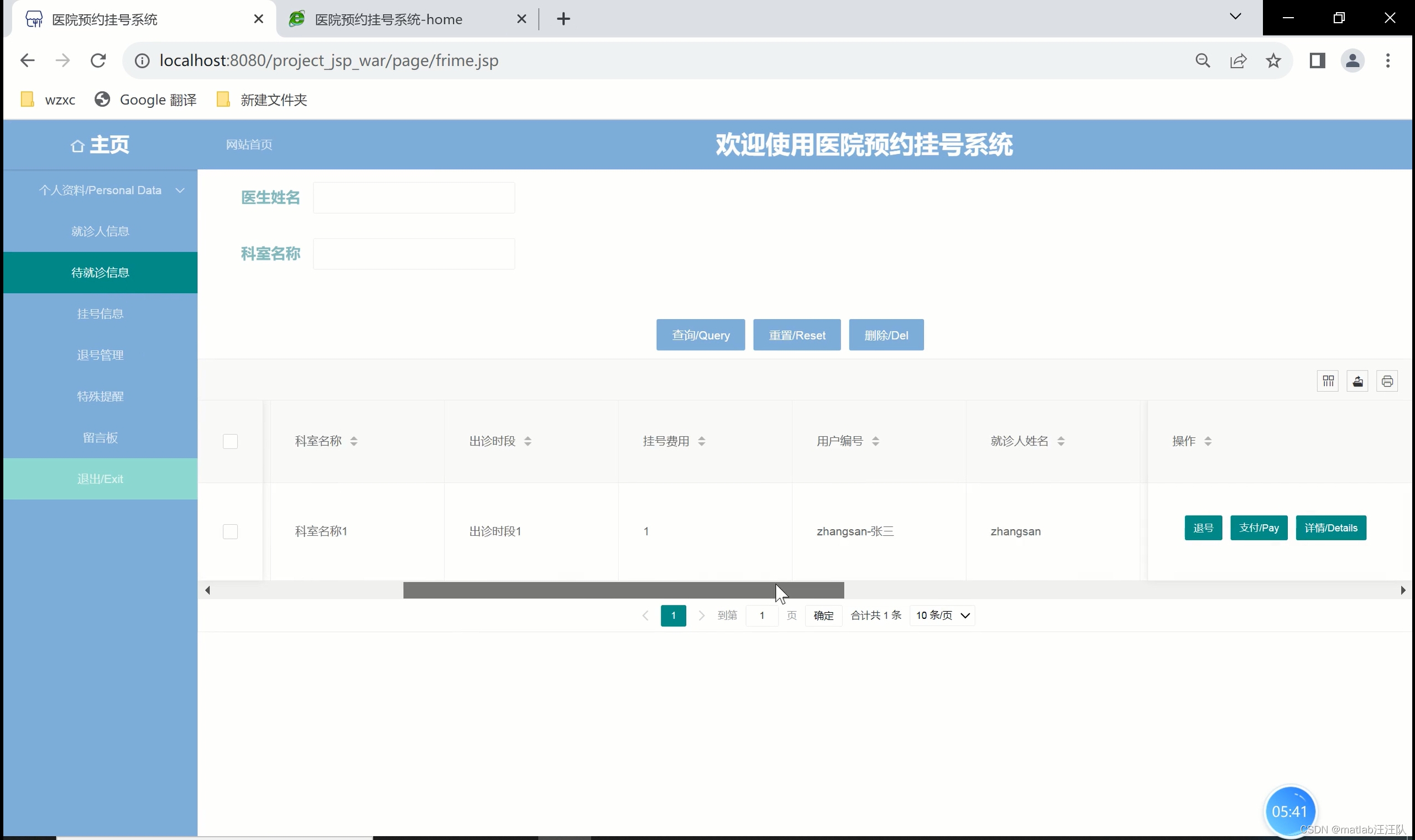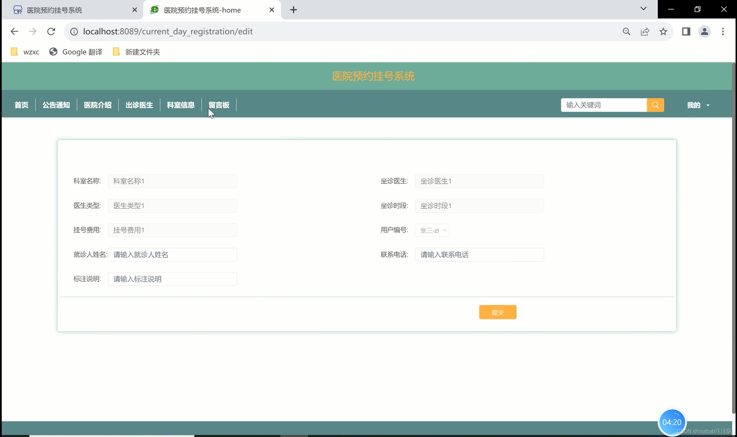 以java为开发技术,实现了一个医院预约挂号系统。