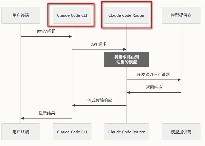 Claude Code Router 作为中间层,将Claude Code发出的Anthropic API请求格式转换为OpenAI API格式,然后转发给兼容OpenAI API的模型提供商(如OpenRouter、DeepSeek、GLM-4.5、豆包等),并将模型的响应转换回Anthropic格式返回。提供了更强的灵活性、成本控制和区域可访问性。