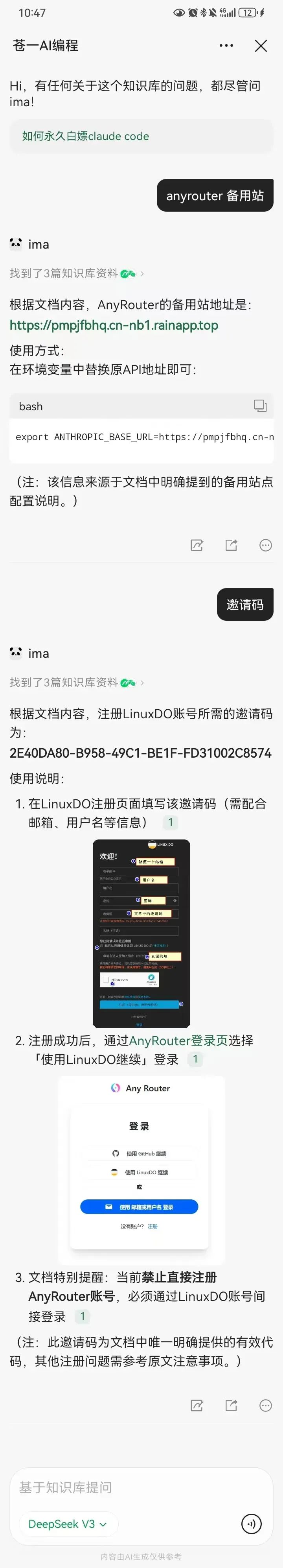 备用站我放在我的知识号中了,大家拉到文末,加入知识库,然后直接问【anyrouter 备用站是啥】,就直接回答你了。
