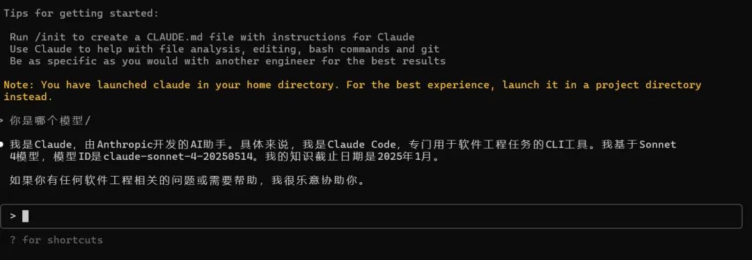 正常情况下输入如下指令就能使用路由器启动Claude Code