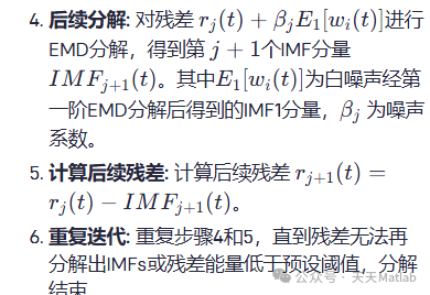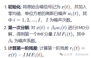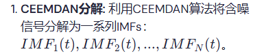 CEEMDAN是EEMD的一种改进算法,其主要目的是解决EEMD在分解过程中出现的残留噪声问题。CEEMDAN通过加入自适应噪声,并计算每一阶的残差,使分解过程更加稳定,并能获得更精确的IMFs。CEEMDAN算法的具体步骤如下: