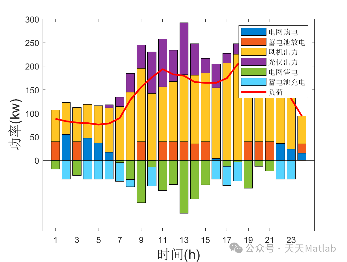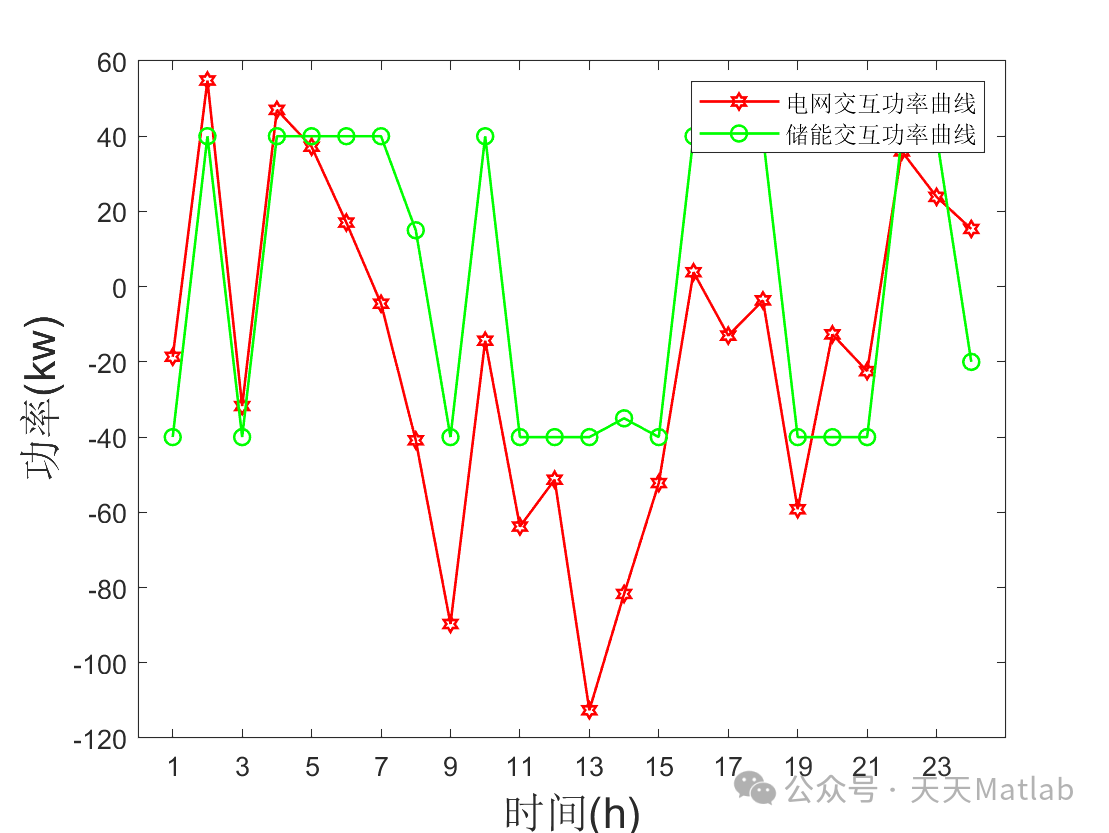 4. 灵活的电网交互: 与主电网的交互可以作为微电网的备用电源,增强系统的稳定性。可以根据电网的电价波动情况,灵活调整与电网的交互功率,实现购电成本的最小化。当电网电价较高时,可以减少从电网的购电量,尽可能利用本地的电源满足负荷需求;当电网电价较低时,可以从电网购买电能,降低运行成本。