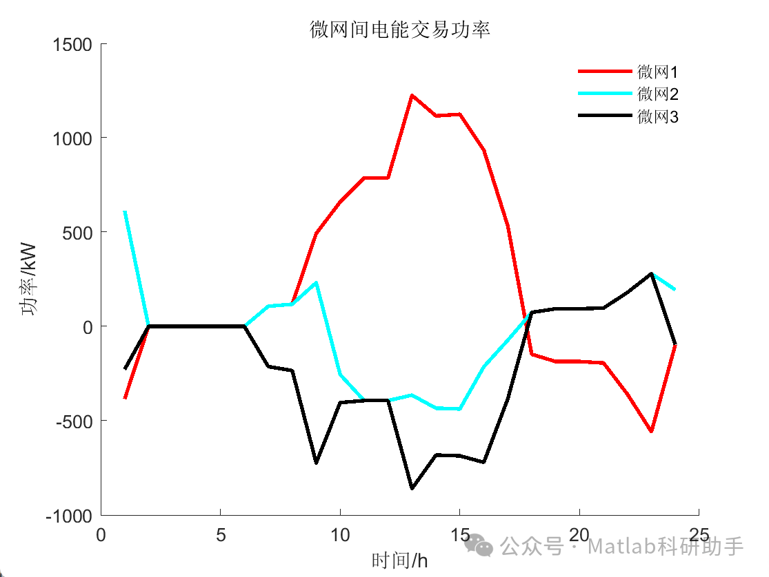 各微网将其最优的电能交互功率发送给一个协调中心。协调中心根据所有微网的电能交互功率,计算出全局电能交互的最优解,并将其发送回各个微网。