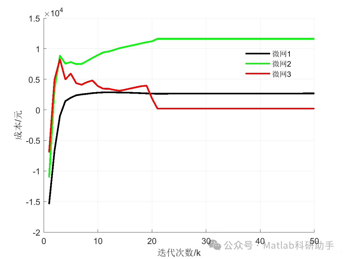 重复以上步骤,直到满足收敛条件,即各微网的电能交互功率趋于稳定,且全局目标函数不再显著改善。