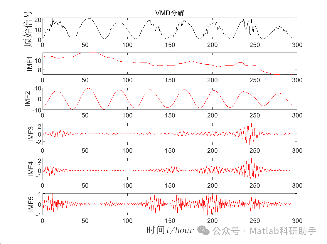 VMD的核心思想是:假设每个IMF具有有限带宽,通过迭代搜索约束变分模型的最优解,将原始信号分解为多个IMF分量。其数学模型可以表示为: