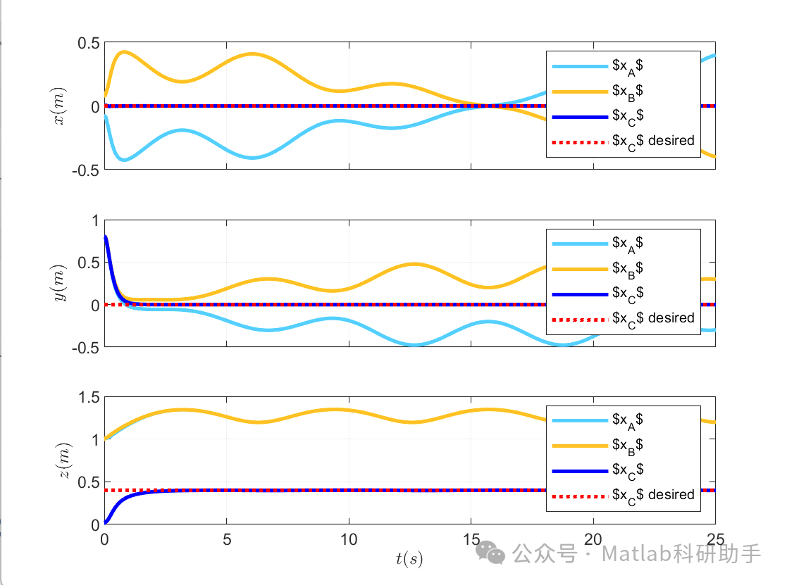 为了验证本文提出的模型和控制策略的有效性,本文进行了数值模拟。数值模拟采用Matlab进行。在数值模拟中,本文首先对四旋翼飞行器和缆绳的动力学模型进行离散化,然后利用数值积分方法求解系统的动力学方程。