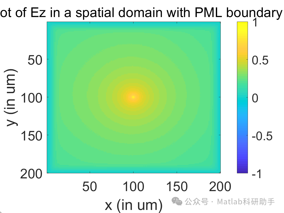 模拟电磁波在自由空间中的传播,观察 PML 是否能够有效吸收边界反射。