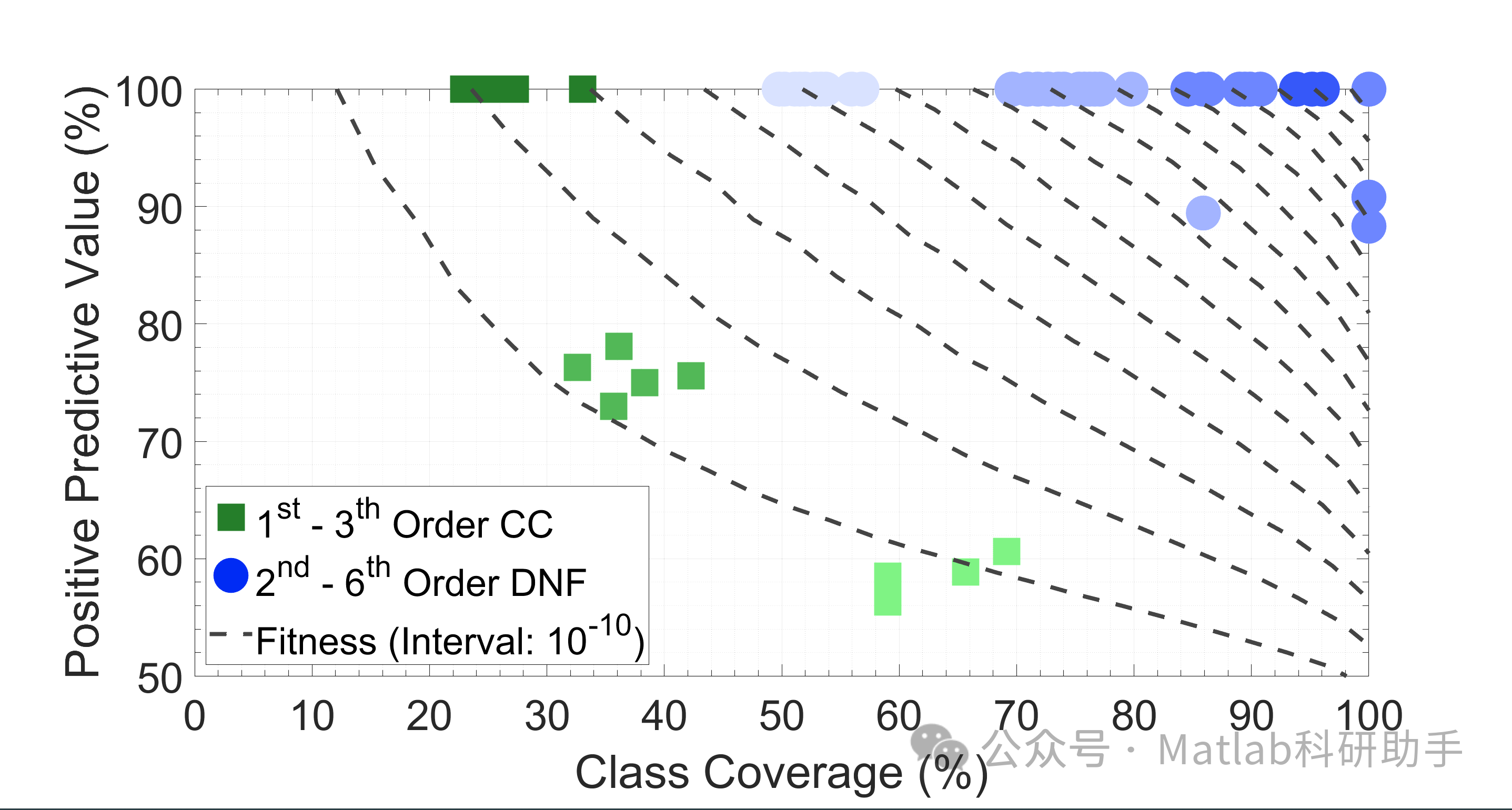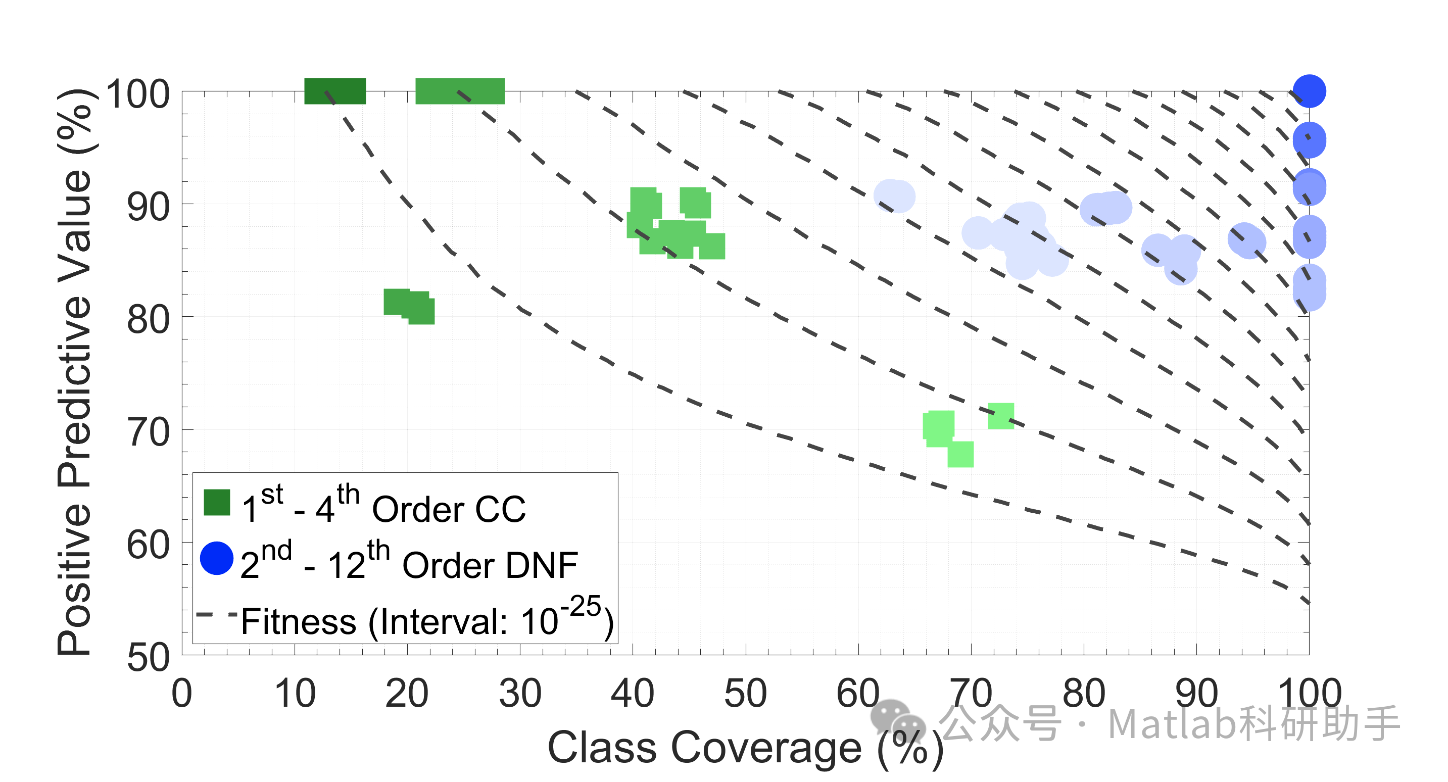 Fitness = w1 * Accuracy + w2 * Coverage - w3 * Complexity其中w1, w2, w3是权重系数,用来平衡准确率、覆盖率和简洁性。