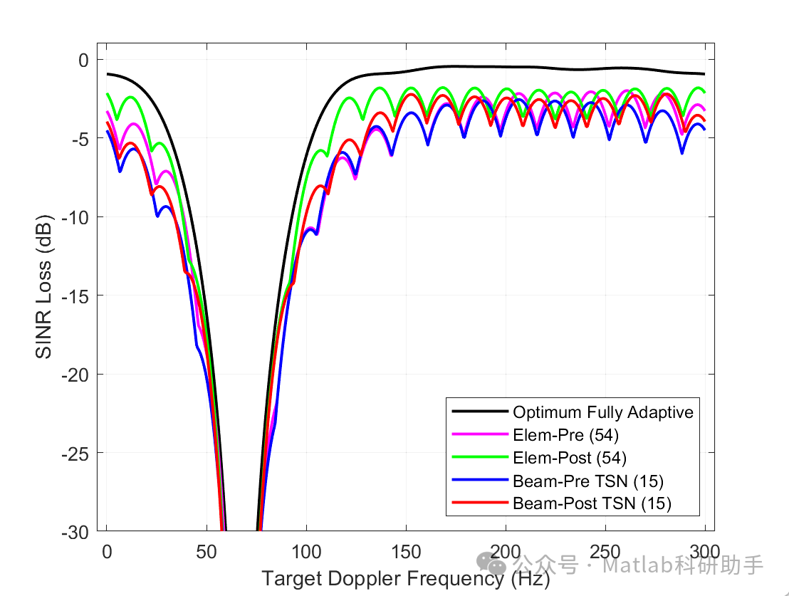 其中,RR是空时协方差矩阵(Space-Time Covariance Matrix, STCM),描述了杂波和噪声在空时域的统计特性;ss是目标导向向量,描述了目标在空时域的理想响应。理论上,如果能够精确地估计出真实的空时协方差矩阵,那么STAP算法可以实现最优的杂波抑制性能。