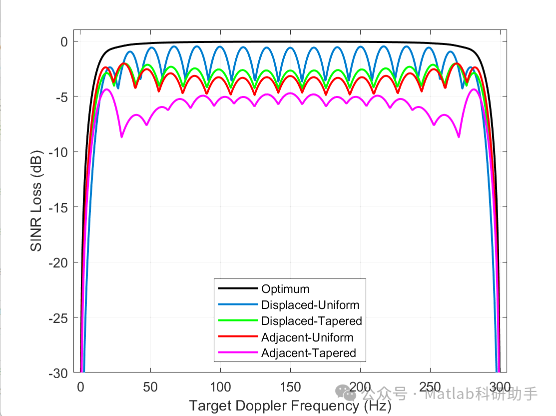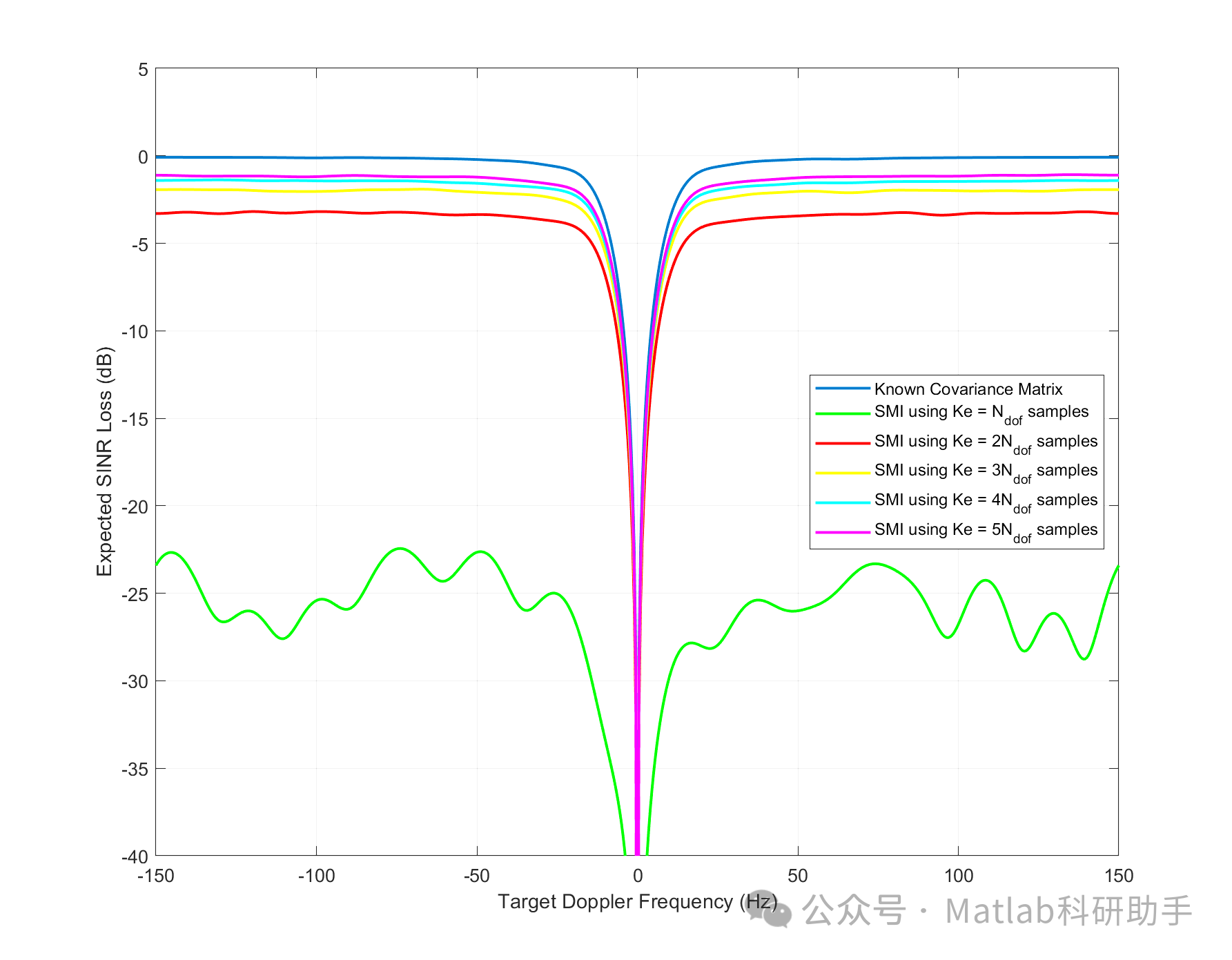 然而,在实际应用中,真实的空时协方差矩阵是未知的,需要从接收到的数据中进行估计。常用的方法是使用训练样本估计协方差矩阵。训练样本是与待检测单元(Cell Under Test, CUT)具有相似杂波统计特性的距离单元的回波数据。常用的协方差矩阵估计方法包括样本矩阵求逆(Sample Matrix Inversion, SMI)算法。