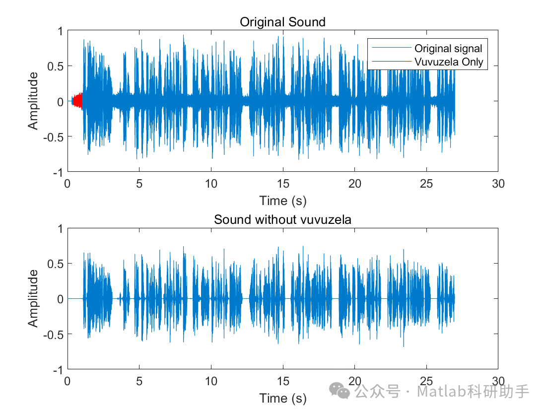 过度的频谱减法会损伤其他有效信号的能量和细节,导致声音失真。如何在抑制Vuvuzela的同时最大程度地保留解说、音乐等有效信号,是算法设计需要平衡的关键问题。