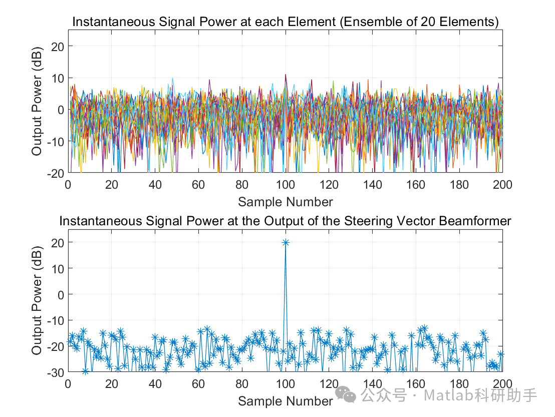 空间匹配滤波器的主要优点是其简单性,只需要知道目标信号的来波方向。在仅存在高斯白噪声的情况下,空间匹配滤波器能够实现最大的信噪比(SNR)增益,这是由匹配滤波器的性质决定的。SNR增益与阵元数目 MM 成正比。