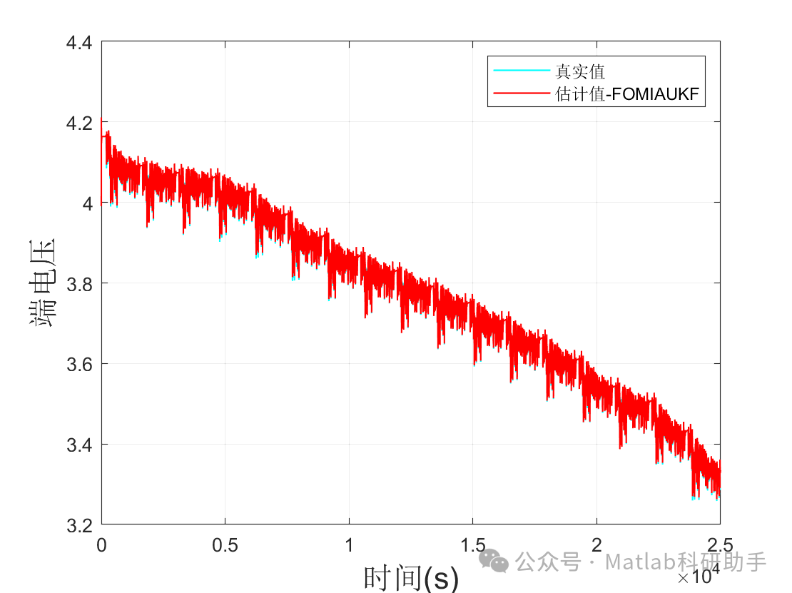 本文提出了一种基于分数阶容性扩展模块、模型参数估计、多新息系数优化的无迹卡尔曼滤波算法 (FOMIAUKF) 用于电池SOC估计。该方法通过引入分数阶导数概念,构建了更符合电池实际动态特性的分数阶等效电路模型;利用在线参数估计技术,实时更新模型参数,增强模型对电池状态变化的适应性;并结合多新息自适应滤波技术,根据实际新息信息调整滤波增益,提高滤波器的抗干扰能力。理论分析表明,该方法能够有效应对电池模型的非线性和时变性,以及测量噪声的非理想性,有望实现高精度、鲁棒的电池SOC估计。