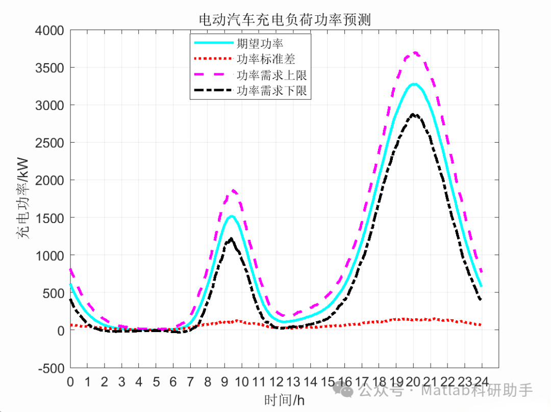 对模拟时间周期内所有时间断面下的整体充电负荷进行统计分析,例如计算不同时间断面下的平均负荷、最大负荷、最小负荷以及负荷的概率分布。通过多次模拟并统计平均结果,可以得到更稳定的预测曲线。同时,可以分析不同场景(例如电动汽车保有量变化、充电策略优化等)对充电负荷的影响。