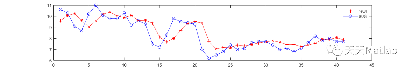 clearclcclose allload wndspd % 示例数据为风速(时间序列)数据,共144个样本%% DE-SVR% 训练/测试数据准备(用前3天预测后一天),用前100天做训练数据input_train(1,:)=wndspd(1:97);input_train(2,:)=wndspd(2:98);input_train(3,:)=wndspd(3:99);output_train=[wndspd(4:100)]';input_test(1,:)=wndspd(101:end-3);input_test(2,:)=wndspd(102:end-2);input_test(3,:)=wndspd(103:end-1);output_test=[wndspd(104:end)]';para=[30,200,0.2,0.8,0.2];[bestc,bestg,test_pre]=my_DE_SVR(para,input_train',output_train',input_test',output_test');% 预测误差计算MSE=mymse(output_test',test_pre)MAE=mymae(output_test',test_pre)MAPE=mymape(output_test',test_pre)FVD=myfvd(output_test',test_pre)CDFR=mycdfr(output_test',test_pre)%% 预测结果图err_pre=output_test'-test_pre;figure('Name','测试数据残差图')set(gcf,'unit','centimeters','position',[0.5,5,30,5])plot(err_pre,'*-');figure('Name','原始-预测图')plot(test_pre,'*r-');hold on;plot(output_test,'bo-');legend('预测','原始')set(gcf,'unit','centimeters','position',[0.5,13,30,5])
