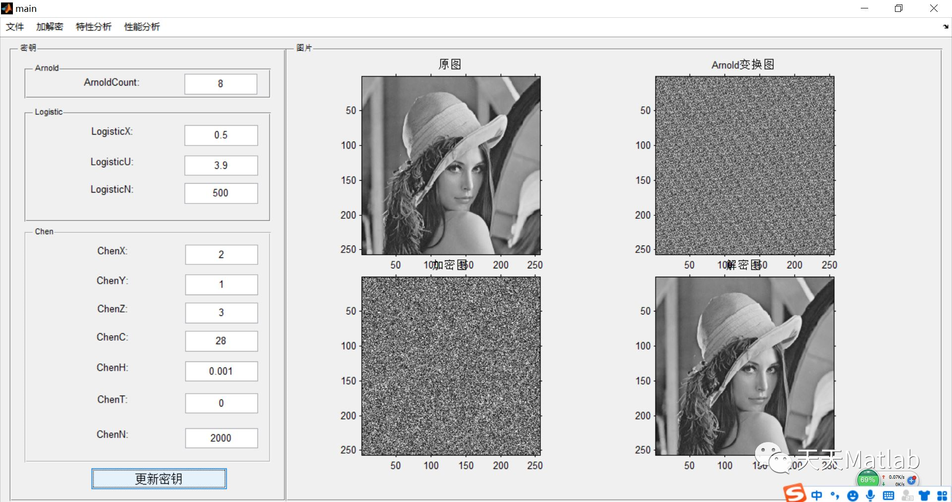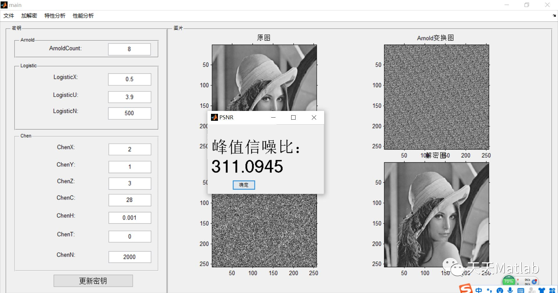function makeEnterKey(hObject, eventdata, handles)global ArnoldCount LogisticX LogisticU LogisticN ChenX ChenY ChenZ ChenC ChenH ChenT ChenN;% % SZ=get(0,'ScreenSize');% % h=figure('menubar','none','position',[SZ(3)/5,SZ(4)/5,600,400],'units','normalized');% % str='<html>adfasdf</html>';% % hText=uicontrol(h,'style','edit','string',str,'fontsize',10,'position',[100 350 70 60]);% %prompt = {'ArnoldCount(>=0):','LogisticX():','LogisticU():','LogisticN():','ChenX():','ChenY():','ChenZ():','ChenC():','ChenH():','ChenT():','ChenN():'};dlg_title = 'Input';num_lines = 1;defaultans = {num2str(ArnoldCount),num2str(LogisticX),num2str(LogisticU),num2str(LogisticN), num2str(ChenX),num2str(ChenY),num2str(ChenZ),num2str(ChenC),num2str(ChenH),num2str(ChenT),num2str(ChenN)};% defaultans = {num2str(ArnoldCount),LogisticX,LogisticU,LogisticN, ChenX,ChenY,ChenZ,ChenC,ChenH,ChenT,ChenN};% defaultans = {'8', '0.5','3.9','500', '2','1','3','28','0.001','0','2000'};k= inputdlg(prompt,dlg_title,num_lines,defaultans);if isempty(k)return;endkey(11)=0;for i=1:11key(i)=str2num(k{i});endArnoldCount=key(1);LogisticX=key(2);LogisticU=key(3);LogisticN=key(4);ChenX=key(5);ChenY=key(6);ChenZ=key(7);ChenC=key(8);ChenH=key(9);ChenT=key(10);ChenN=key(11);setappdata(handles.figure,'KeyFlag',true);