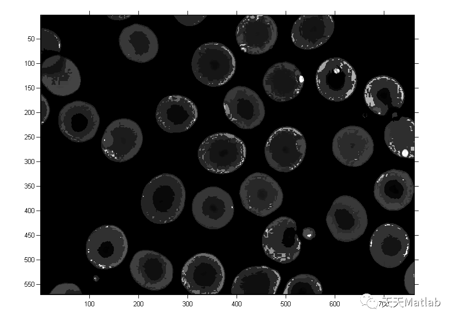 function J = My_RegionGrowing(I, init_pos, reg_maxdist)[row, col] = size(I); % 输入图像的维数J = zeros(row, col); % 输出x0 = init_pos(1); % 初始点y0 = init_pos(2);reg_mean = I(x0, y0); % 生长起始点灰度值J(x0, y0) = 1; % 生长起始点设置为白色reg_sum = reg_mean; % 符合生长条件的灰度值总和reg_num = 1; % 符合生长条件的点的个数count = 1; % 每次判断周围八个点中符合条件的数目reg_choose = zeros(row*col, 2); % 记录已选择点的坐标reg_choose(reg_num, :) = init_pos;num = 1; % 第一个点while count > 0s_temp = 0; % 周围八个点中符合条件的点的灰度值总和count = 0;for k = 1 : num % 对新增的每个点遍历,避免重复i = reg_choose(reg_num - num + k, 1);j = reg_choose(reg_num - num +k, 2);if J(i, j) == 1 && i > 1 && i < row && j > 1 && j < col % 已确定且不是边界上的点% 八邻域for u = -1 : 1for v = -1 : 1% 未处理且满足生长条件的点if J(i + u, j + v) == 0 && abs(I(i + u, j + v) - reg_mean) <= reg_maxdistJ(i + u, j + v) = 1; % 对应点设置为白色count = count + 1;reg_choose(reg_num + count, :) = [i + u, j + v];s_temp = s_temp + I(i + u, j + v); % 灰度值存入s_temp中endendendendendnum = count; % 新增的点reg_num = reg_num + count; % 区域内总点数reg_sum = reg_sum + s_temp; % 区域内总灰度值reg_mean = reg_sum / reg_num; % 区域灰度平均值end