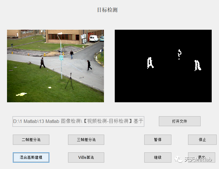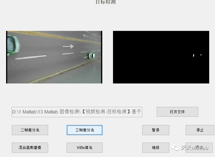 function varargout = object_detect(varargin)% OBJECT_DETECT MATLAB code for object_detect.fig% OBJECT_DETECT, by itself, creates a new OBJECT_DETECT or raises the existing% singleton*.%% H = OBJECT_DETECT returns the handle to a new OBJECT_DETECT or the handle to% the existing singleton*.%% OBJECT_DETECT('CALLBACK',hObject,eventData,handles,...) calls the local% function named CALLBACK in OBJECT_DETECT.M with the given input arguments.%% OBJECT_DETECT('Property','Value',...) creates a new OBJECT_DETECT or raises the% existing singleton*. Starting from the left, property value pairs are% applied to the GUI before object_detect_OpeningFcn gets called. An% unrecognized property name or invalid value makes property application% stop. All inputs are passed to object_detect_OpeningFcn via varargin.%% *See GUI Options on GUIDE's Tools menu. Choose "GUI allows only one% instance to run (singleton)".%% See also: GUIDE, GUIDATA, GUIHANDLES% Edit the above text to modify the response to help object_detect% Last Modified by GUIDE v2.5 16-May-2018 08:41:00% Begin initialization code - DO NOT EDITgui_Singleton = 1;gui_State = struct('gui_Name', mfilename, ...'gui_Singleton', gui_Singleton, ...'gui_OpeningFcn', @object_detect_OpeningFcn, ...'gui_OutputFcn', @object_detect_OutputFcn, ...'gui_LayoutFcn', [] , ...'gui_Callback', []);if nargin && ischar(varargin{1})gui_State.gui_Callback = str2func(varargin{1});endif nargout[varargout{1:nargout}] = gui_mainfcn(gui_State, varargin{:});elsegui_mainfcn(gui_State, varargin{:});end% End initialization code - DO NOT EDIT% --- Executes just before object_detect is made visible.function object_detect_OpeningFcn(hObject, eventdata, handles, varargin)% This function has no output args, see OutputFcn.% hObject handle to figure% eventdata reserved - to be defined in a future version of MATLAB% handles structure with handles and user data (see GUIDATA)% varargin command line arguments to object_detect (see VARARGIN)% Choose default command line output for object_detecthandles.output = hObject;% Update handles structureguidata(hObject, handles);% UIWAIT makes object_detect wait for user response (see UIRESUME)% uiwait(handles.figure1);% --- Outputs from this function are returned to the command line.function varargout = object_detect_OutputFcn(hObject, eventdata, handles)% varargout cell array for returning output args (see VARARGOUT);% hObject handle to figure% eventdata reserved - to be defined in a future version of MATLAB% handles structure with handles and user data (see GUIDATA)% Get default command line output from handles structurevarargout{1} = handles.output;% --- Executes on button press in pushbutton1.function pushbutton1_Callback(hObject, eventdata, handles)% hObject handle to pushbutton1 (see GCBO)% eventdata reserved - to be defined in a future version of MATLAB% handles structure with handles and user data (see GUIDATA)[filename, pathname] = uigetfile({'*.avi'; '*.mp4'},'打开视频');str = [pathname filename];set(handles.edit1, 'String', str);function edit1_Callback(hObject, eventdata, handles)release(videoSource);