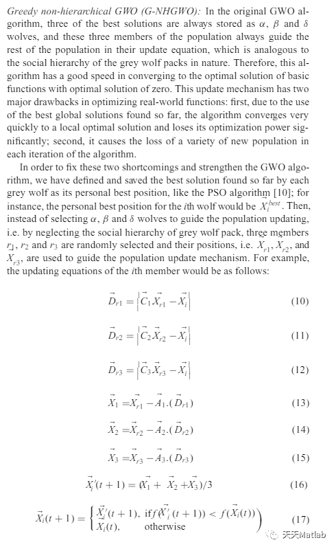 本文针对灰狼优化(GWO)算法在处理优化问题时性能下降的问题进行了研究。Niu等人的工作指出,当最优解远离0时,GWO的性能会降低。作者提出了一种直接修改,即忽略灰狼的社会等级,成功地减少了这一缺陷。通过在基准和实际工程问题上的应用,证明了改进方法的有效性。仿真代码展示了算法的实现过程,包括搜索代理的初始化、更新以及位置调整等步骤。