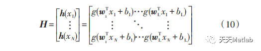 极限学习机是由黄广斌等[13]提出的一种针对前馈神经网络设计的机器学习算法。该算法结构简单、计算速率快。ELM的关键在于找到输出和输出之间的映射空间。首先确定隐含层之间的连接权值w和隐含层神经元的偏置b。选择一个无限可微的函数作为隐含层神经元的激活函数g(x),则隐藏层输出矩阵为: