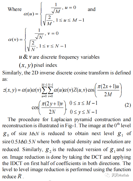 该博客介绍了使用离散余弦变换(DCT)和拉普拉斯金字塔的一种新颖图像融合技术。研究发现,使用更高层级的金字塔可以提供更好的融合质量。虽然执行时间与金字塔层数成正比,但该算法简单易实现,适用于实时应用。作者提供了MATLAB代码以供快速实现和验证算法,并分享了运行结果。此外,还提到了该技术可用于互补信息图像和多模型图像融合。