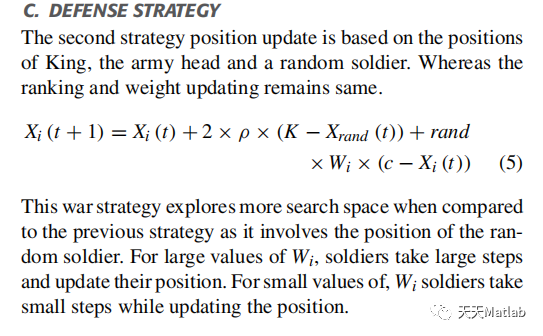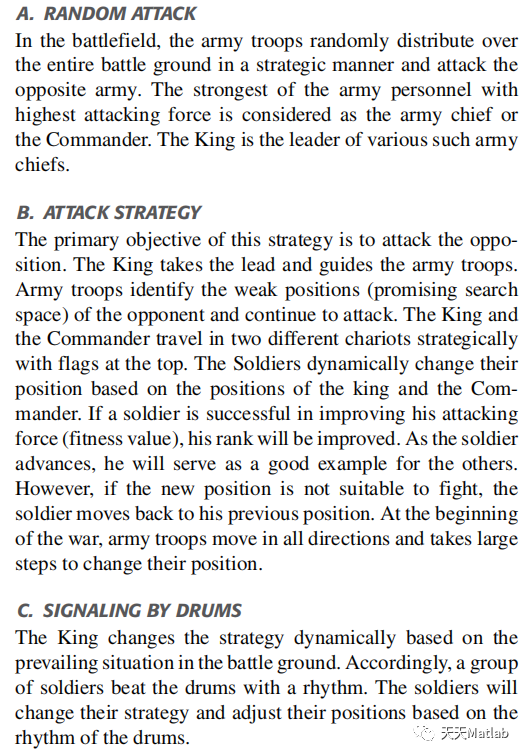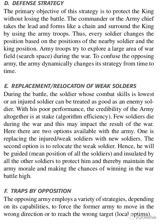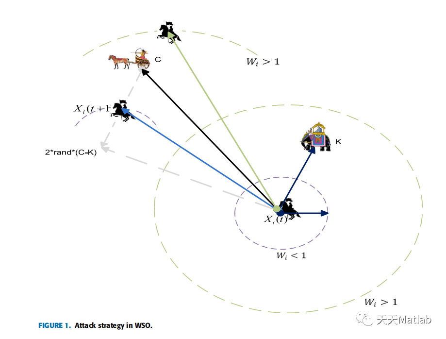 WSO 是 Ayyarao 等人于 2022 年提出一种基于古代战争策略的新型元启发式优化算法 。该算法灵感来自于古代战争中的攻击策略和防御策略,并通过士兵在战场上的位置更新来达到求解优化问题的目的。具有寻优能力强,收敛速度快的特点。