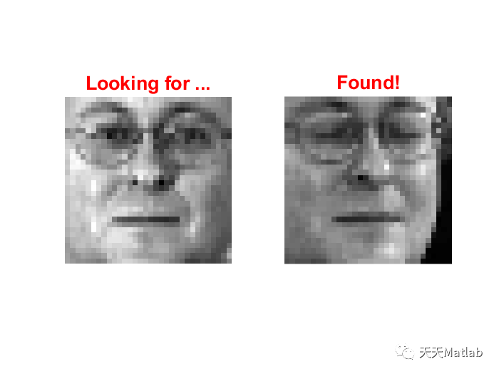 imshow(reshape(fea(ri, :), m, n), []);title('Looking for!','FontWeight','bold','Fontsize',16,'color','red');