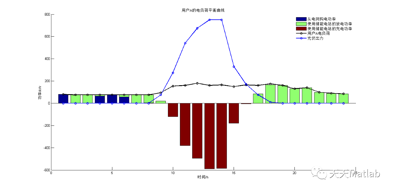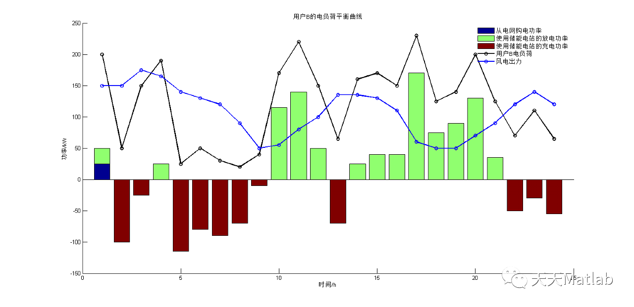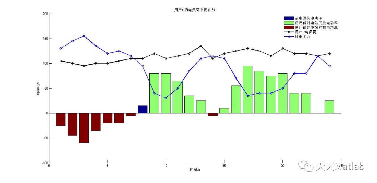 legend('从电网购电功率','使用储能电站的放电功率','使用储能电站的充电功率','用户C电负荷','风电出力');