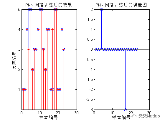 title('PNN 网络训练后的误差图')