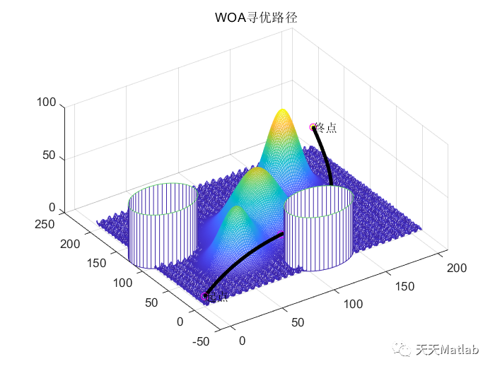 文章提出了一种使用鲸鱼优化算法解决复杂环境下无人机三维航迹规划的方法。通过构建三维地形和禁飞区模型,结合适应的评价函数,该算法旨在寻找最优飞行路径。代码示例展示了算法的关键步骤,包括搜索代理的位置更新和领导者的选取。